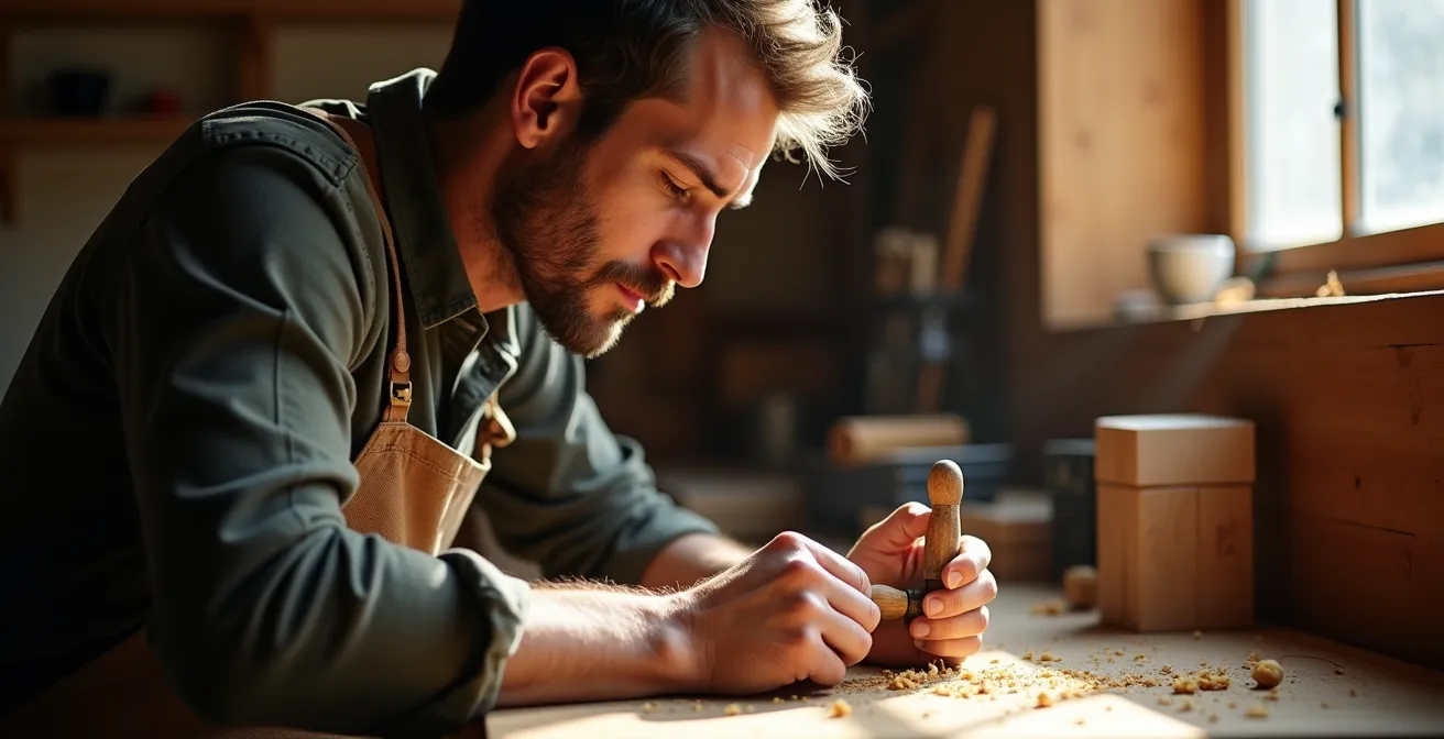 The key is to shift your focus from power and speed to precision and process. Hand-tool woodworking is a fundamentally different experience. It’s a conversation with the wood, not a battle against it. The sound is not the roar of a motor but the gentle “shhh” of a hand plane shaving a curl of wood, or the quiet scratch of a Japanese pull saw. This sensory-rich, low-noise environment is ideal for deep concentration.